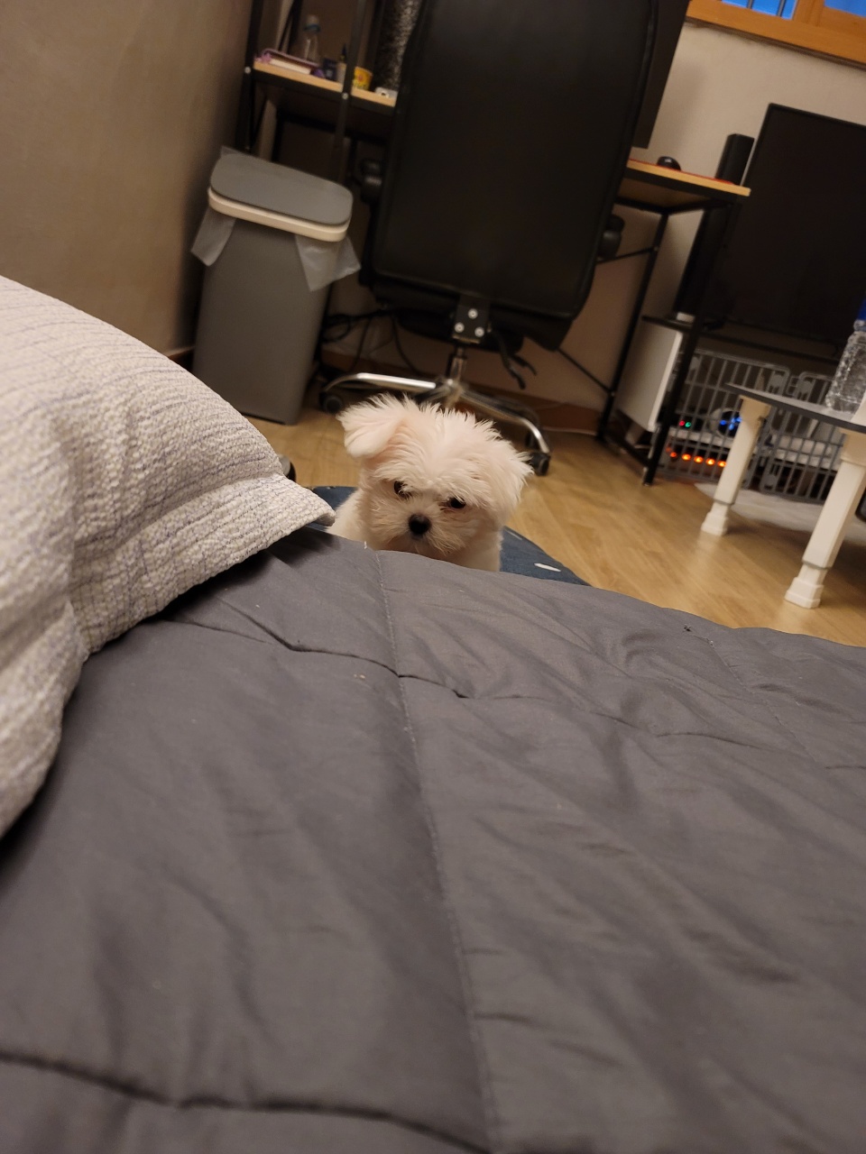 토토는 간식이 오자마자 뭐 먹을지 고르는 중이다.